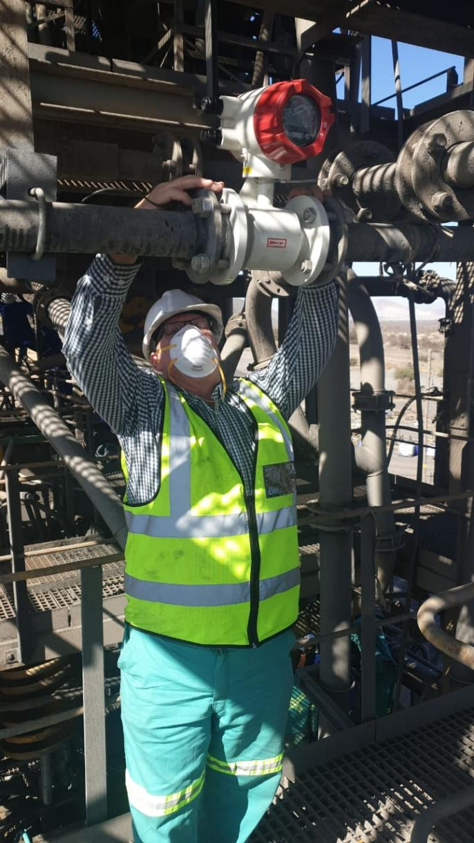 位于南美洲秘魯利馬的一家當(dāng)?shù)刂牟傻V企業(yè),圖中的工程師正在新建的洗礦廠內(nèi)安裝米科的電磁流量計。該項目主要保證清洗礦砂過程中的水量的計量,而洗礦過程使用水量控制一直都是工廠節(jié)能減排的重要抓手。