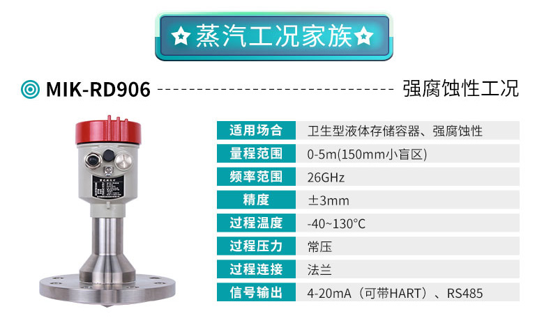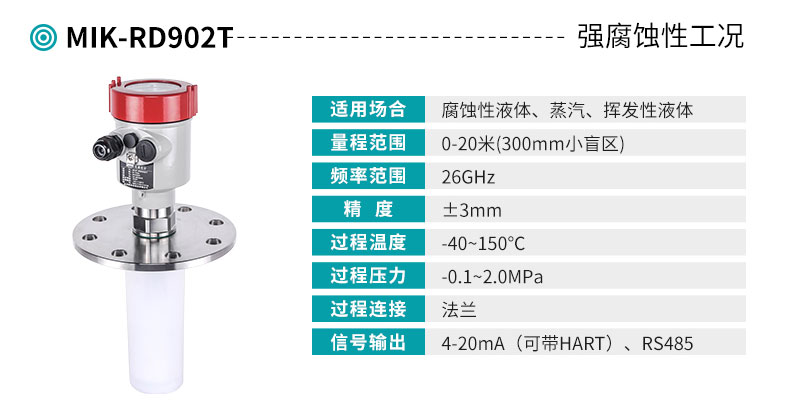 米科MIK-RD902T/906高頻雷達(dá)液位計(jì),26G高頻系列可用于需要發(fā)射角度小精度高的場(chǎng)合。