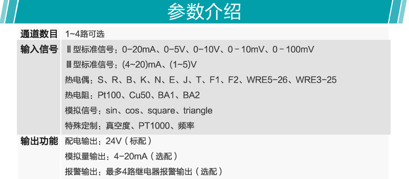 儀表的輸入信號是萬能信號輸入的,選擇信號,跟現場的傳感器有關,一般壓力變送器的信號為4-20mA的,溫度傳感器一般 是熱電偶跟熱電阻的,只要一一對應就可以了